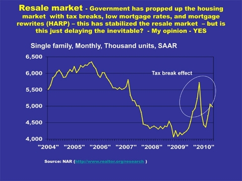What Jim is saying is that in spite of the problems with financing - with the 02-07 shift to non-agency securitization and back to the post 08 shift to 85+% FMae&FMac, the national level of home sales has remains surprisingly constant.